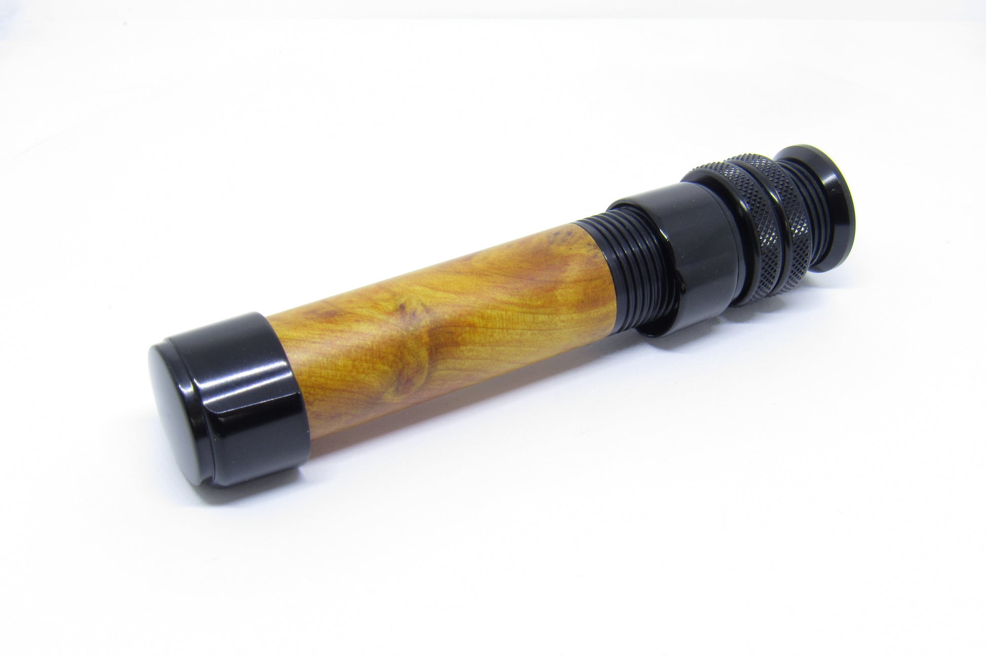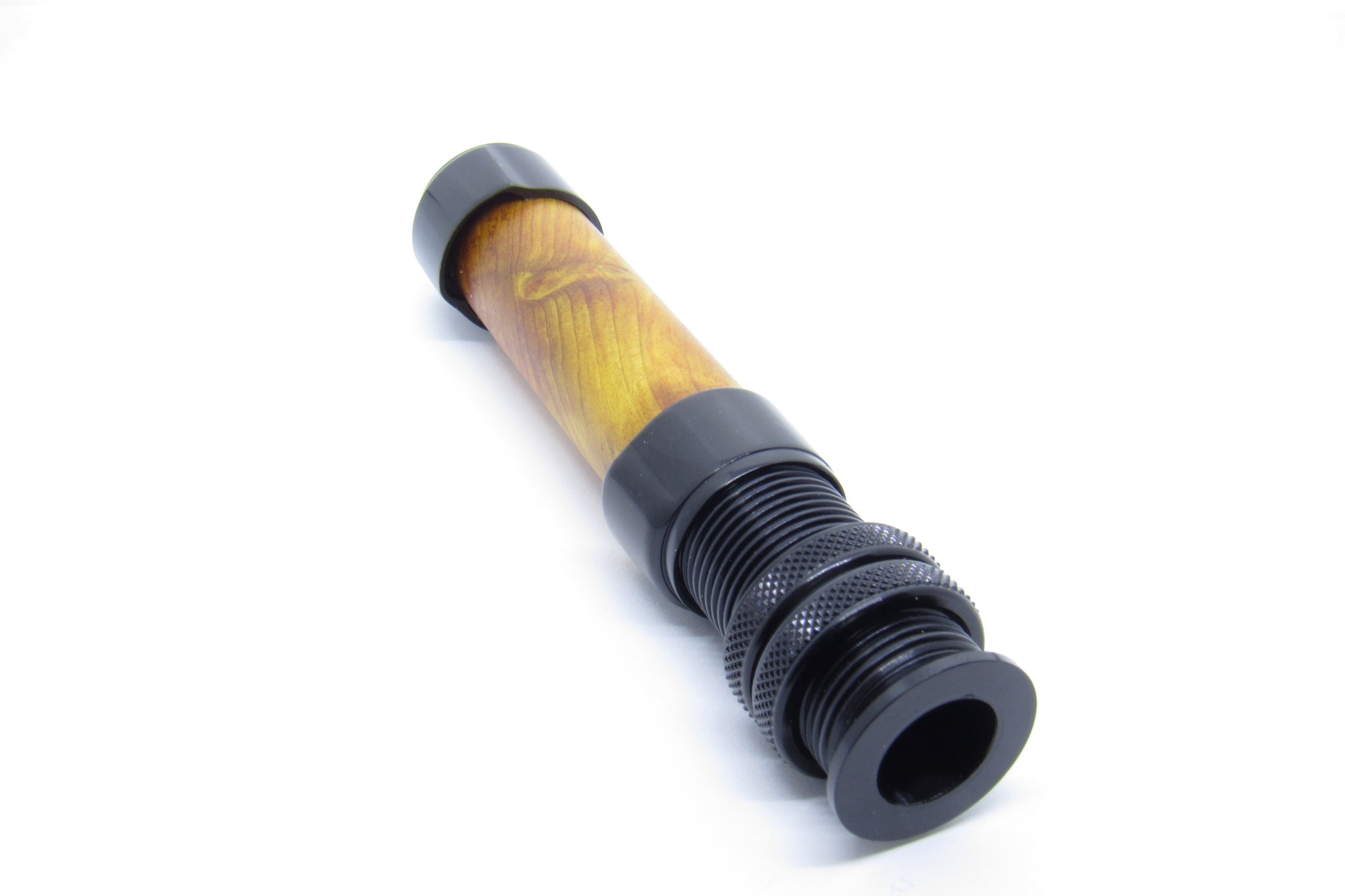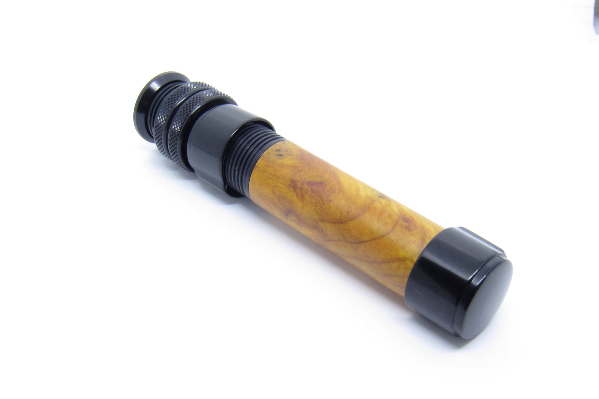 Sehr edler Downlock Rollenhalter für Ruten der Klasse 3-5 mit Edelholzspacer und Anschlussring in der Farbe schwarz. Ideal passen dazu die pacbay Ringe.