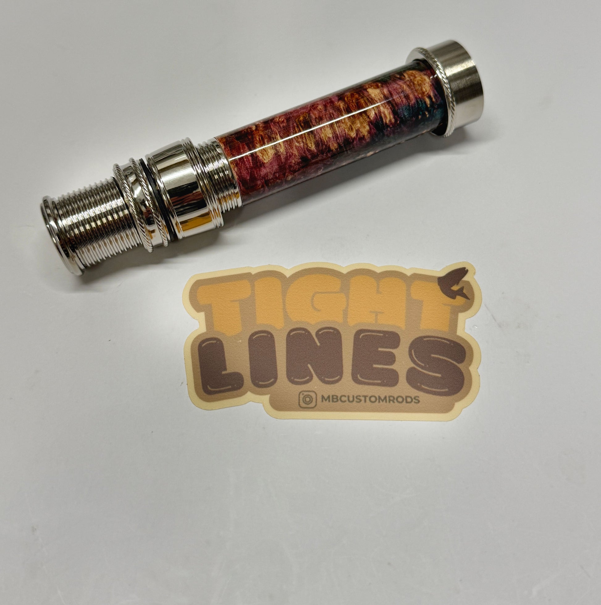 Wunderschöner Snakebrand Rollenhalter aus Nickelsilber in Uplock Variation inkl. einem Custom Insert aus gefärbtem und stabilisiertem Maserholz.