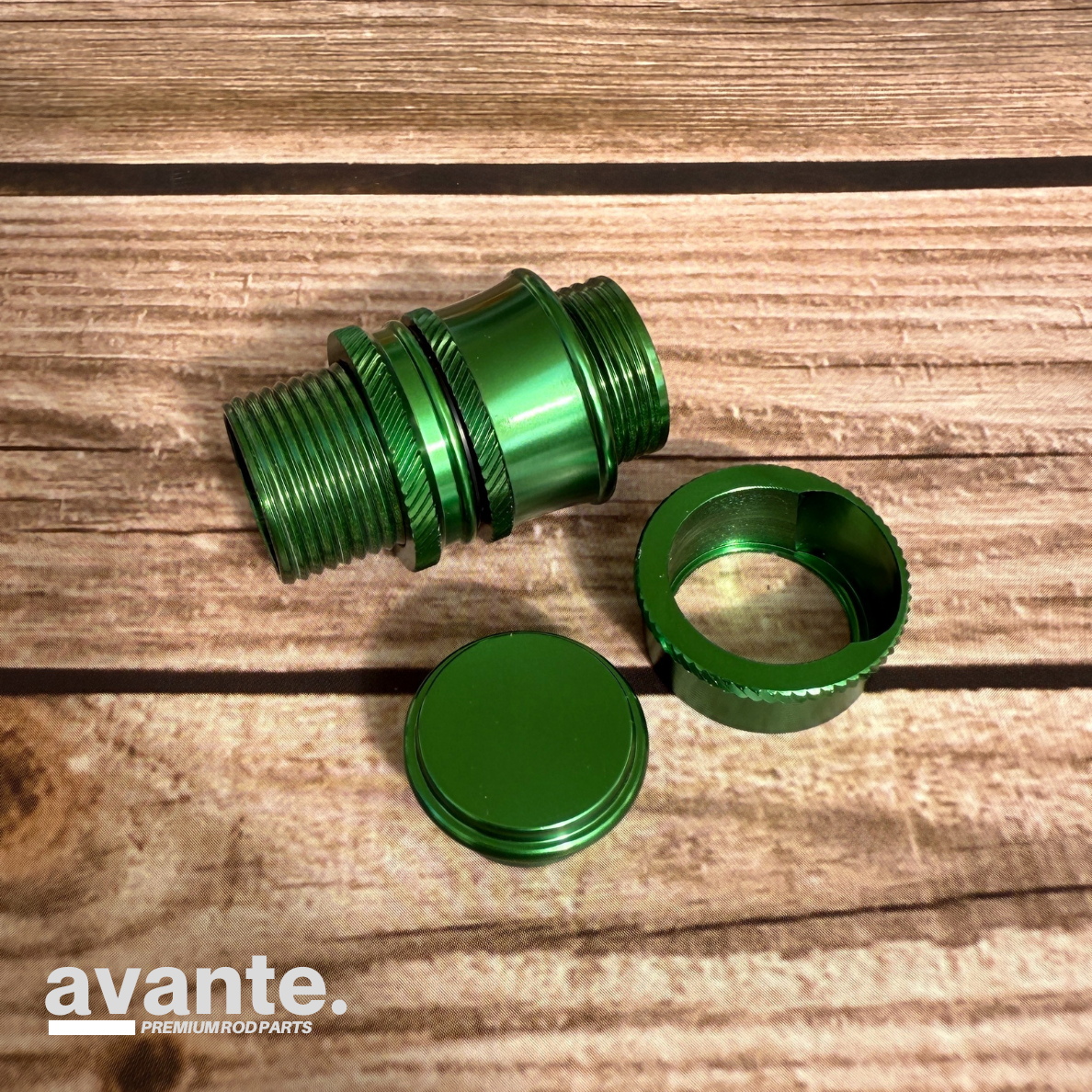 The Avante reel seat features classic lines, knurled edges, double threads, a Teflon washer for corrosion protection, and a gently curved cap made of aircraft-grade aluminum. A classic that looks good and works as it should.