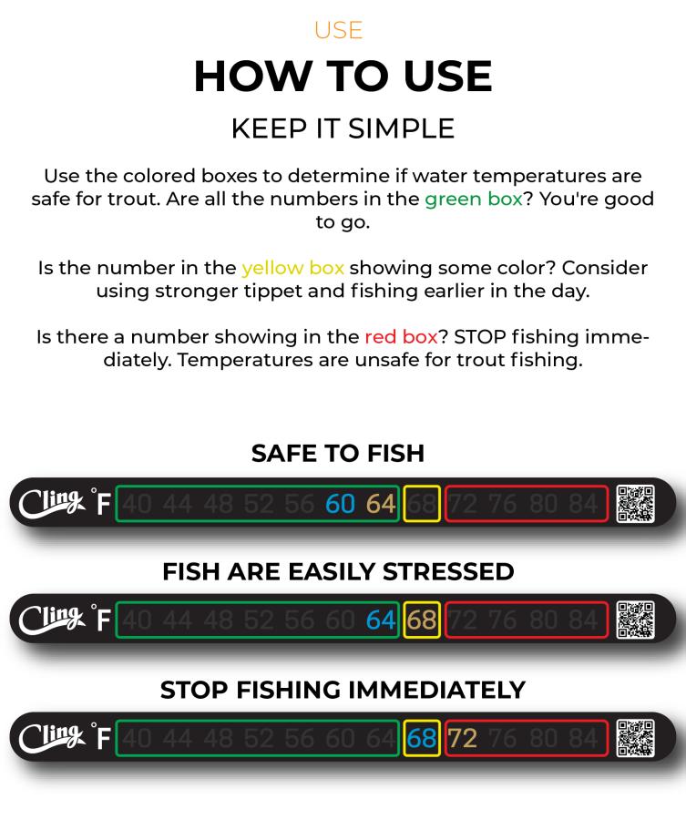 With this temperature band, you'll never have to guess the water temperature again. The thermometer attaches securely to your fishing net or any other smooth surface and displays the exact water temperature with an accuracy of 1-2 degrees. It also features a green-marked "safe zone," a yellow-marked "warning zone," and a red-marked "danger zone," so the user knows precisely when the water temperature is safe for trout and when it isn't! Easy to read and simple to use, this thermometer ensures the safety of your trout.