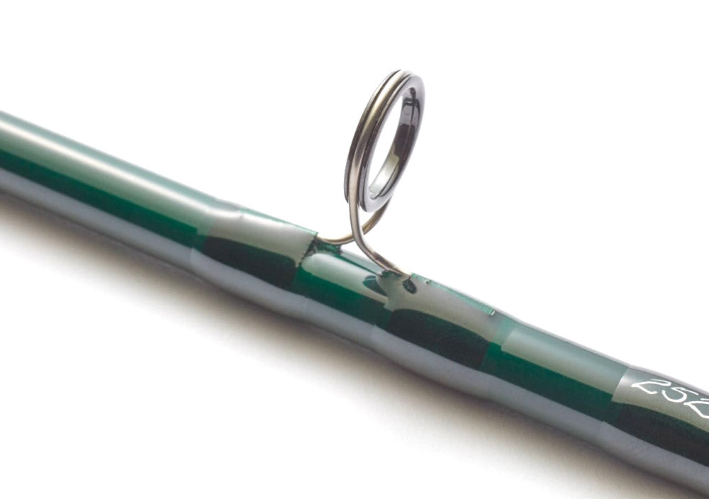- High-end Führungsringe aus Cerecoil-Harttitankonstruktion mit hoher Flexibilität und Keramikeinsätzen für minimale Reibung