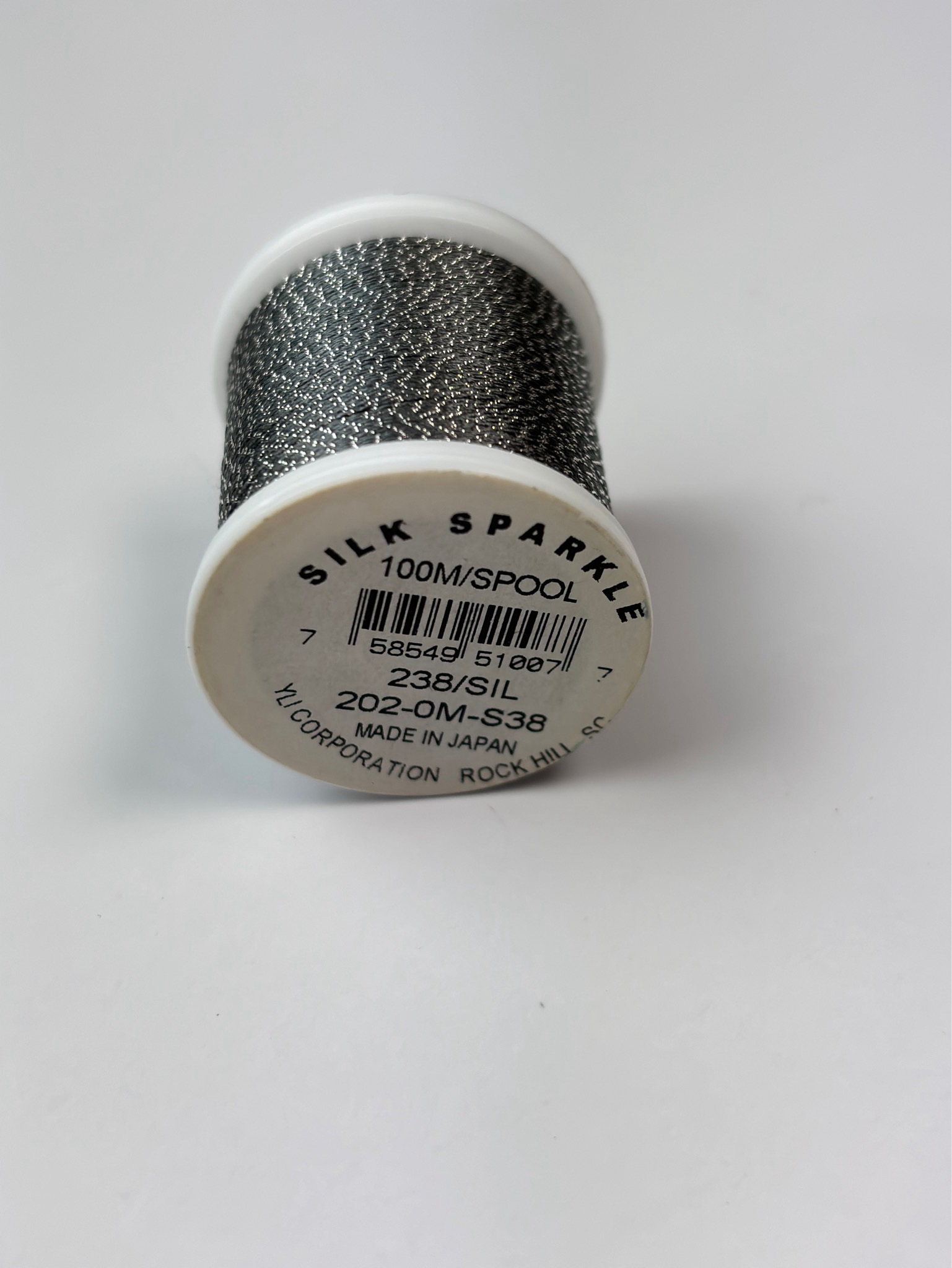 NOS YLI canne à pêche en soie Sparkle Thread dans la combinaison de couleurs noir argent.