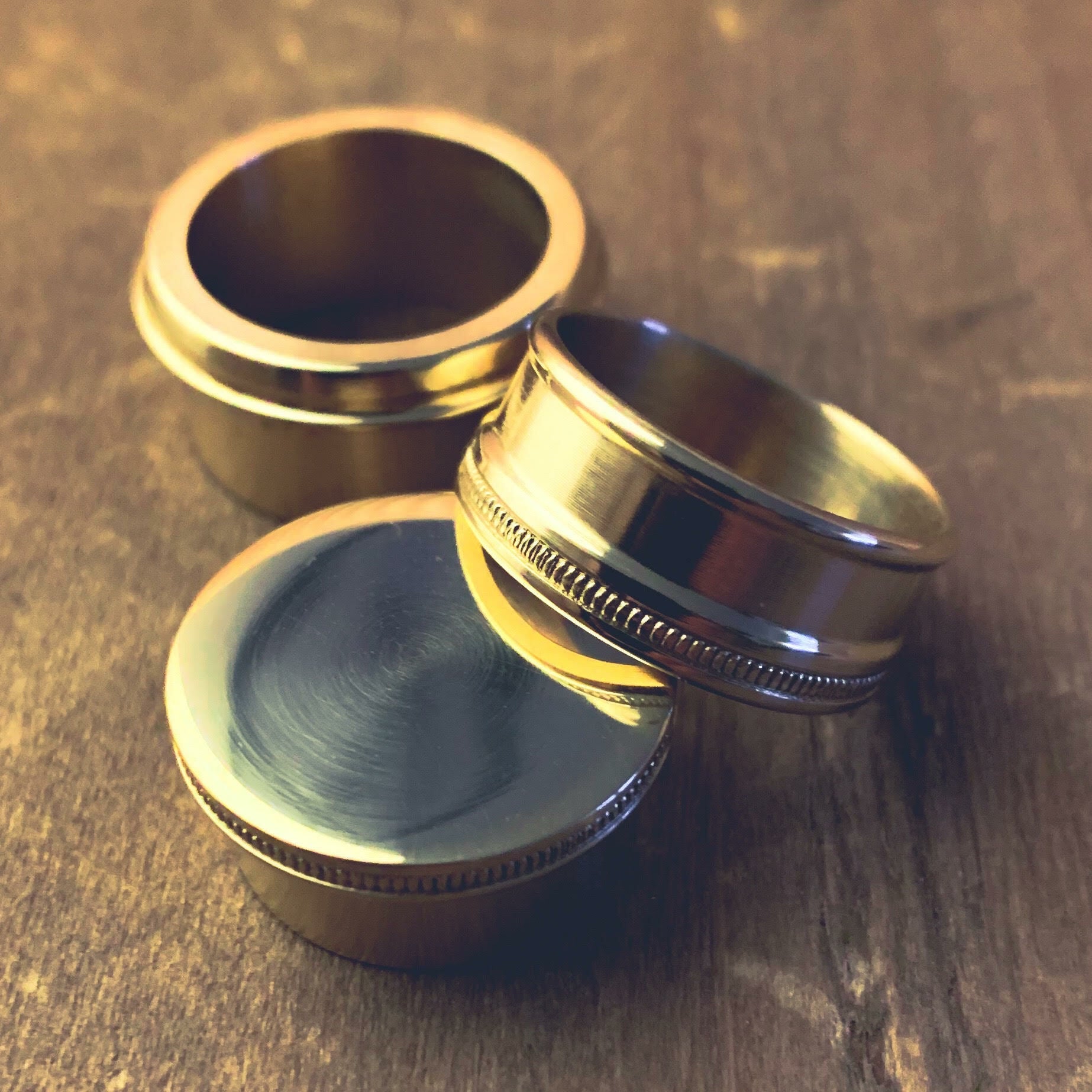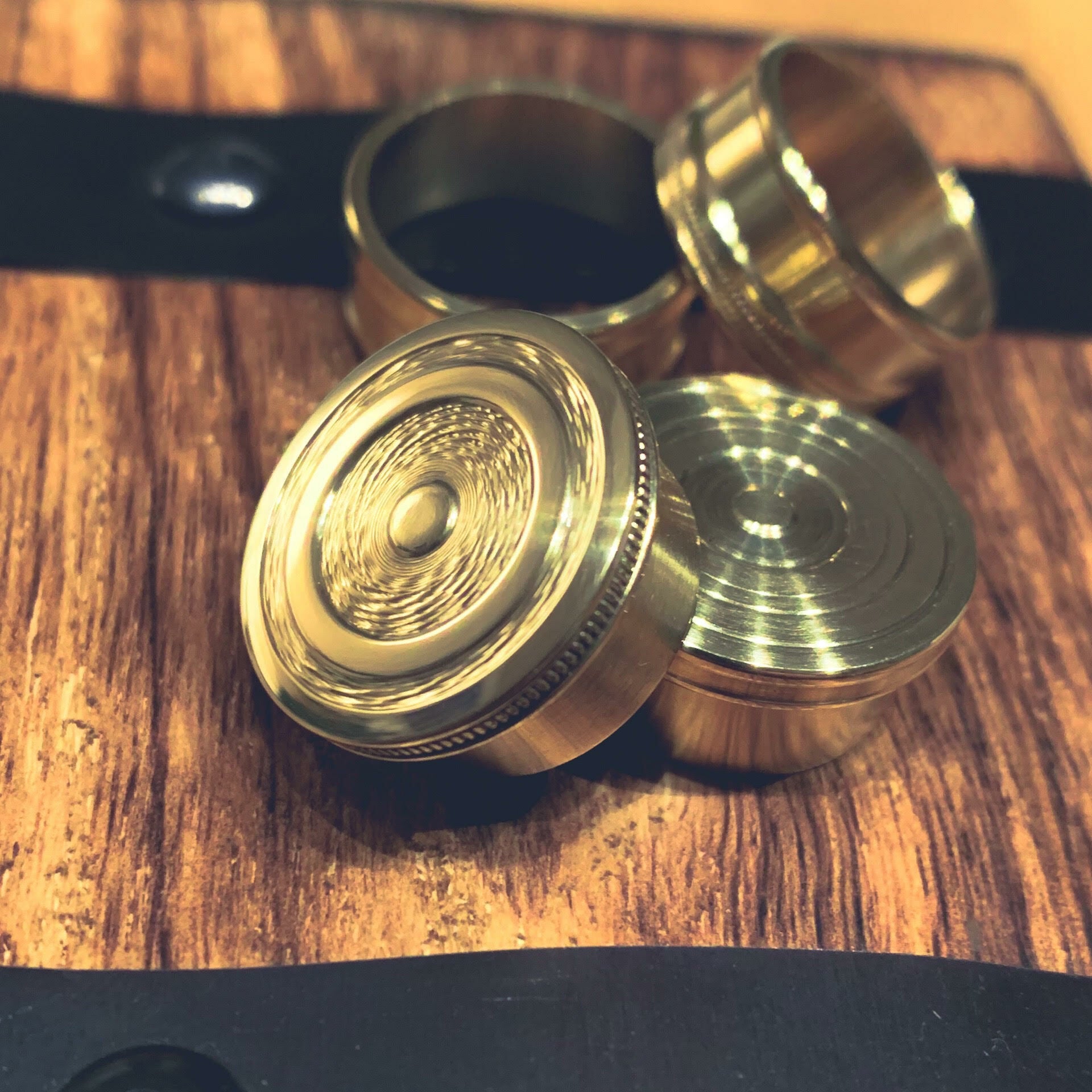 Individuell handgefertigte Uplock Slide Band Hardware aus poliertem MS58 Messing.