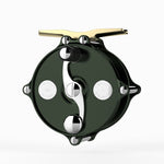 VR Reels Trota Superba 2 3/4″ - Dark Olive (Winston Green) mit goldenem Rollenfuss und schwarzem Knob